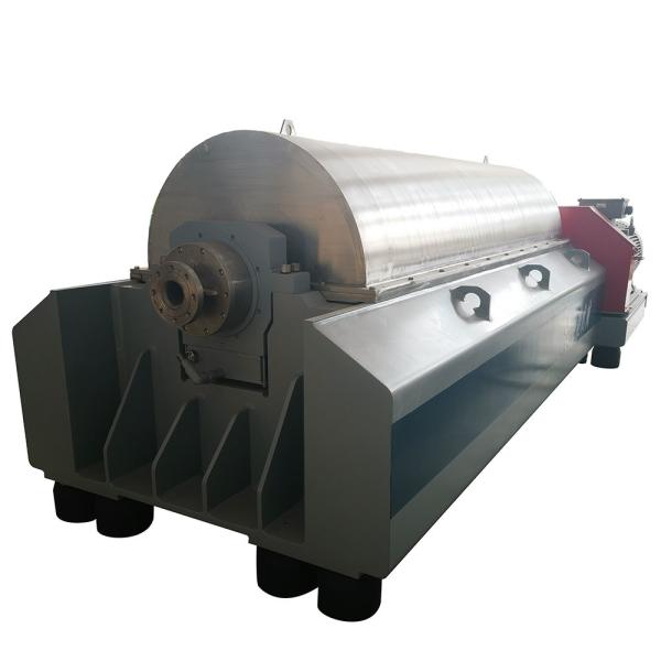 Centrifuge is consist of two rotors, one is drum the other is screw conveyor ( For short spiral). Drum running with High-speed, the drum and slurry will rotate together and by the centrifugal force effect, this centrifugal force is larger than the weight many times, so that solid particles will be separated from the liquid, from the drum axis, then setting on the drum wall, the screw conveyor which located in the drum and rotating at the speed which lower than the speed of drum then push the solid particles to the residue discharge port.